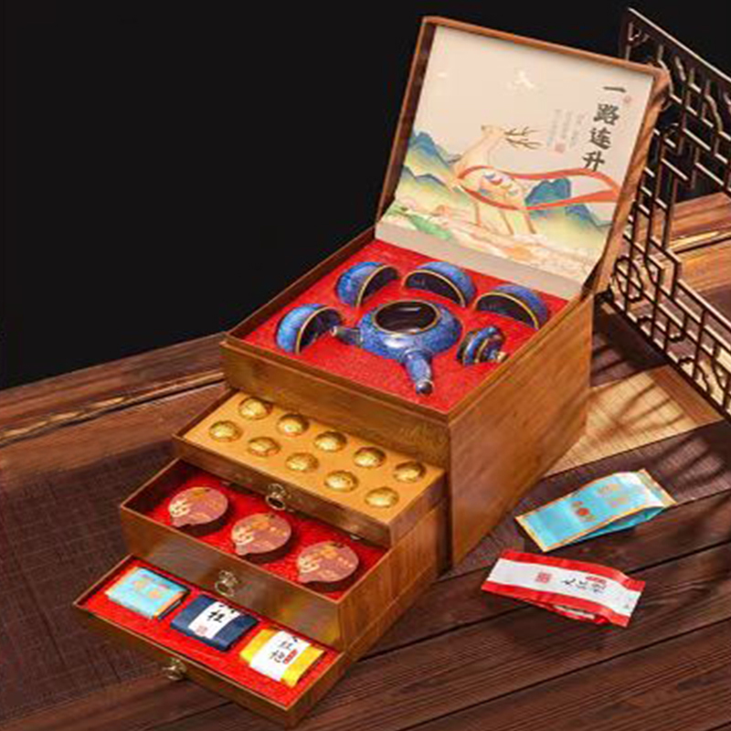 福建 一路连升 四层礼盒装 木纹礼盒+礼袋+茶具三大茗茶 产地直发 只卖正品