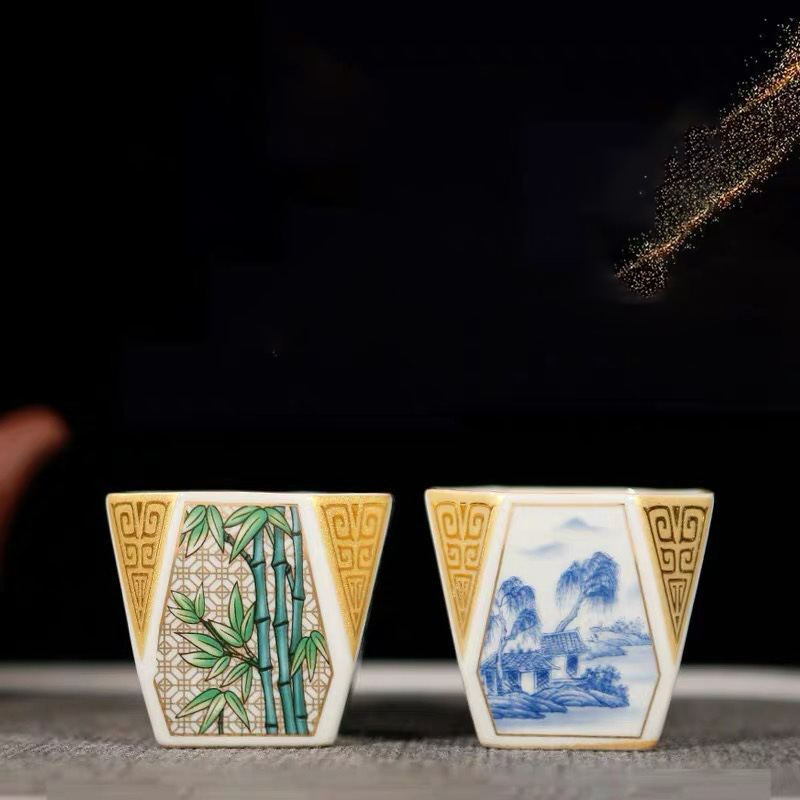 羊脂玉掐丝珐琅彩八方杯陶瓷主人杯梅兰竹菊茶杯品茗杯单杯礼