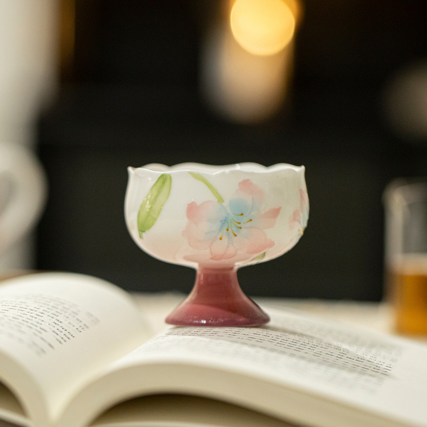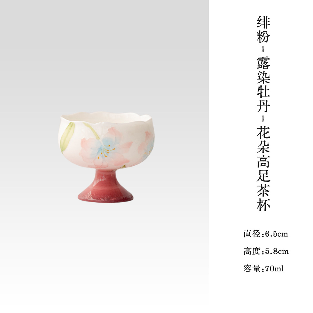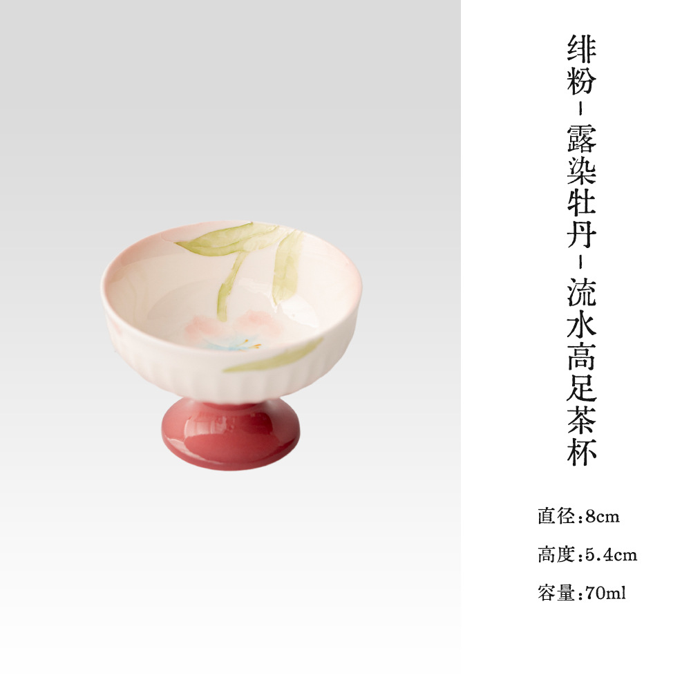 绯粉-露染牡丹-流水高足茶杯 ¥53