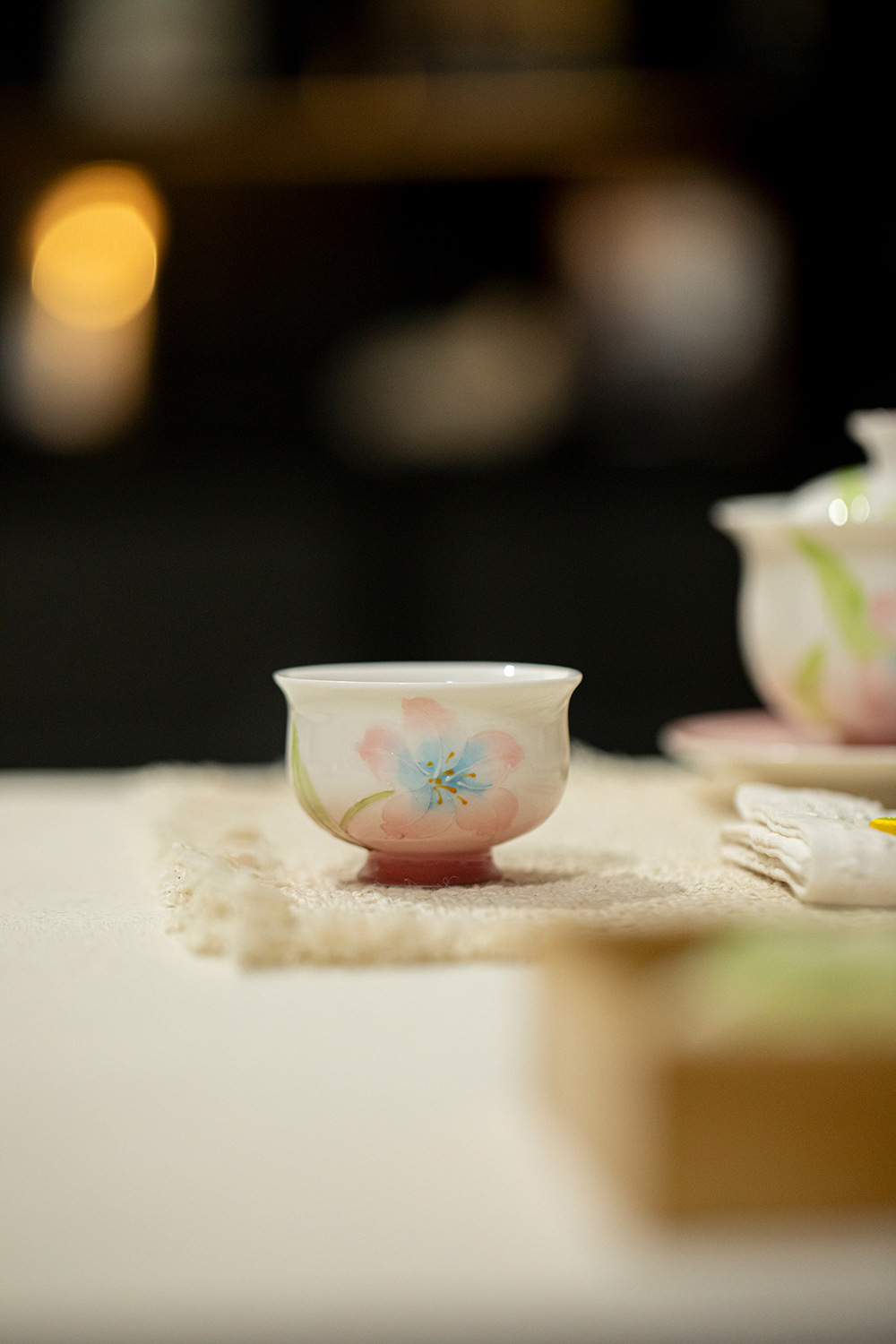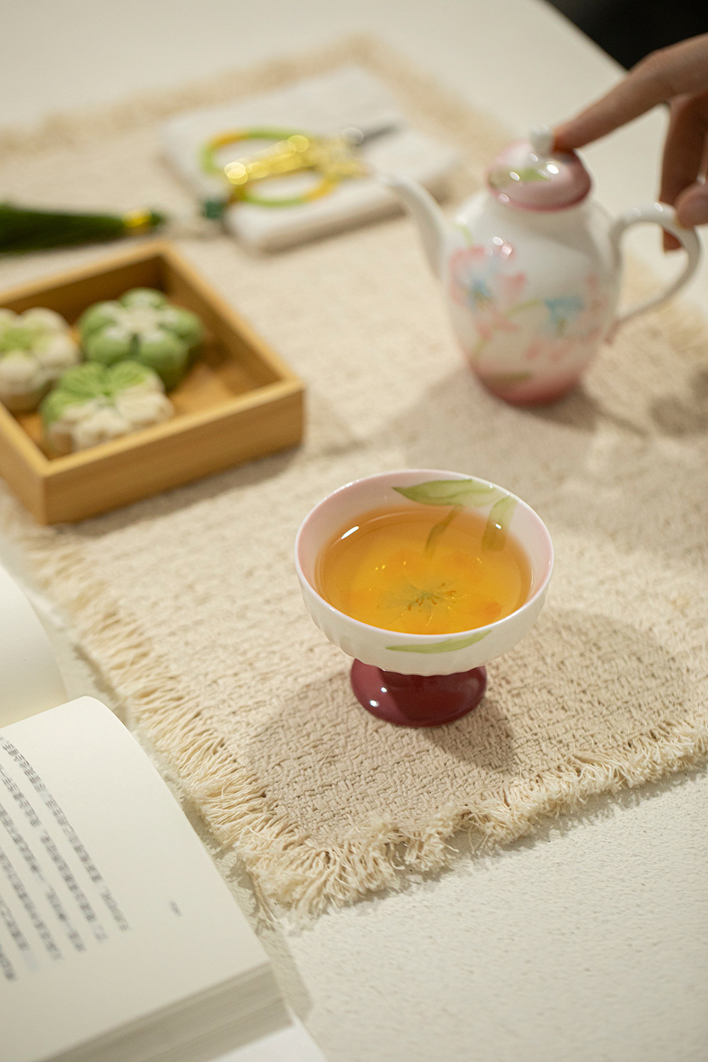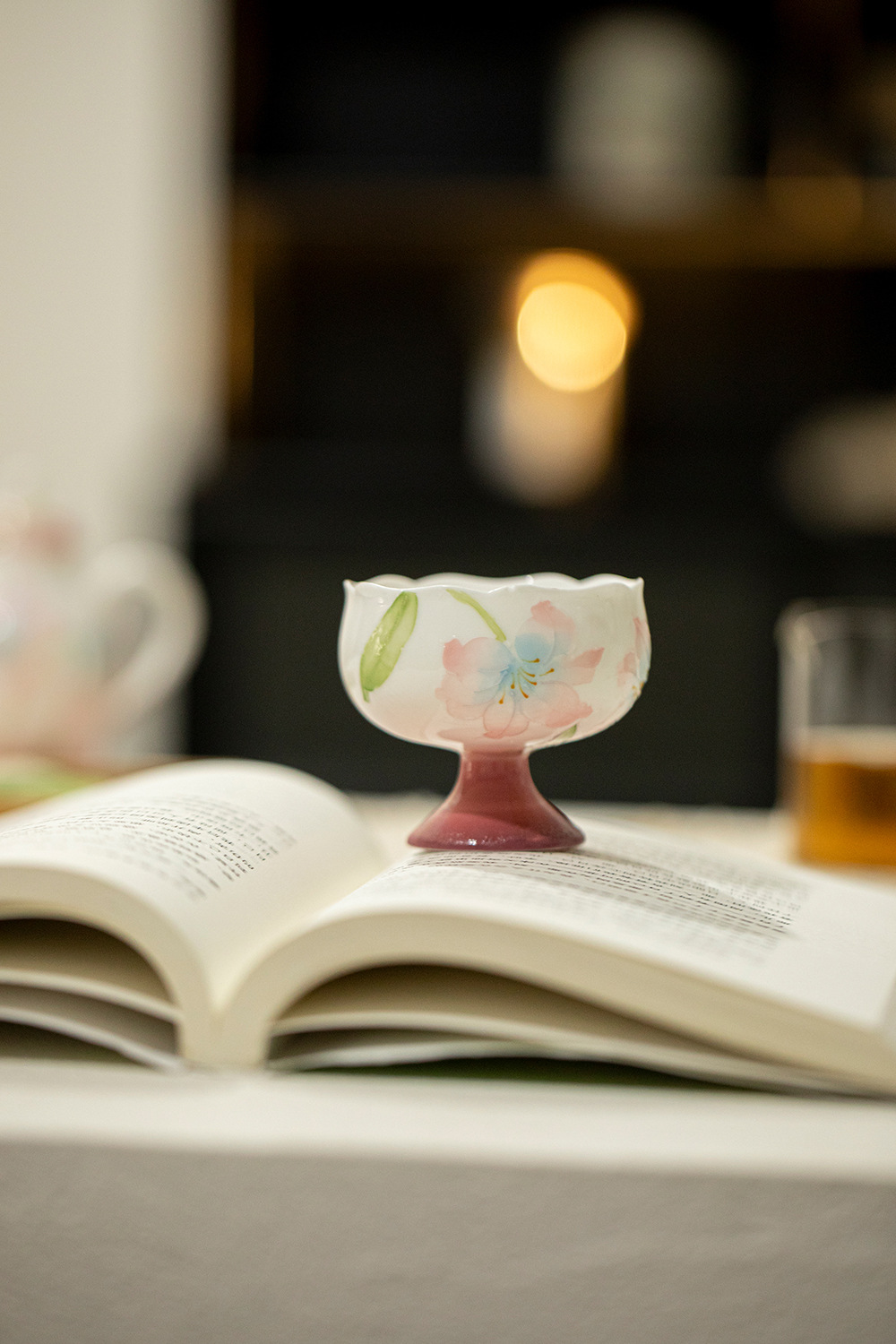 绯粉-露染牡丹-流水高足茶杯 ¥53