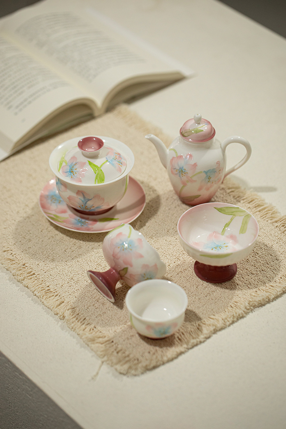 墨己绯粉露染牡丹手绘有田烧茶具合集功夫茶具陶瓷茶壶主人杯茶杯