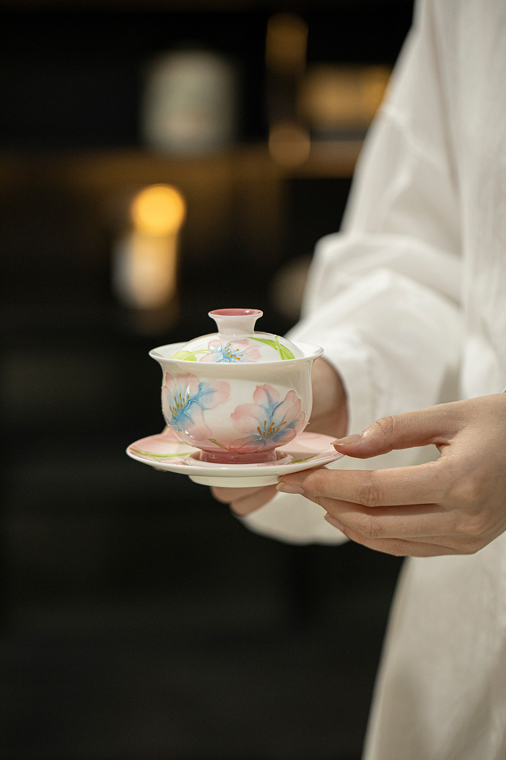 绯粉-露染牡丹-元宝三才盖碗 ¥119