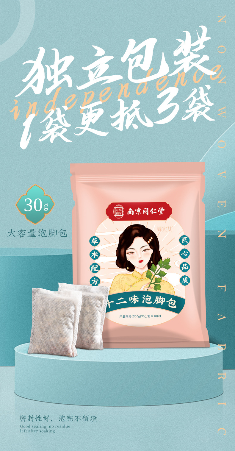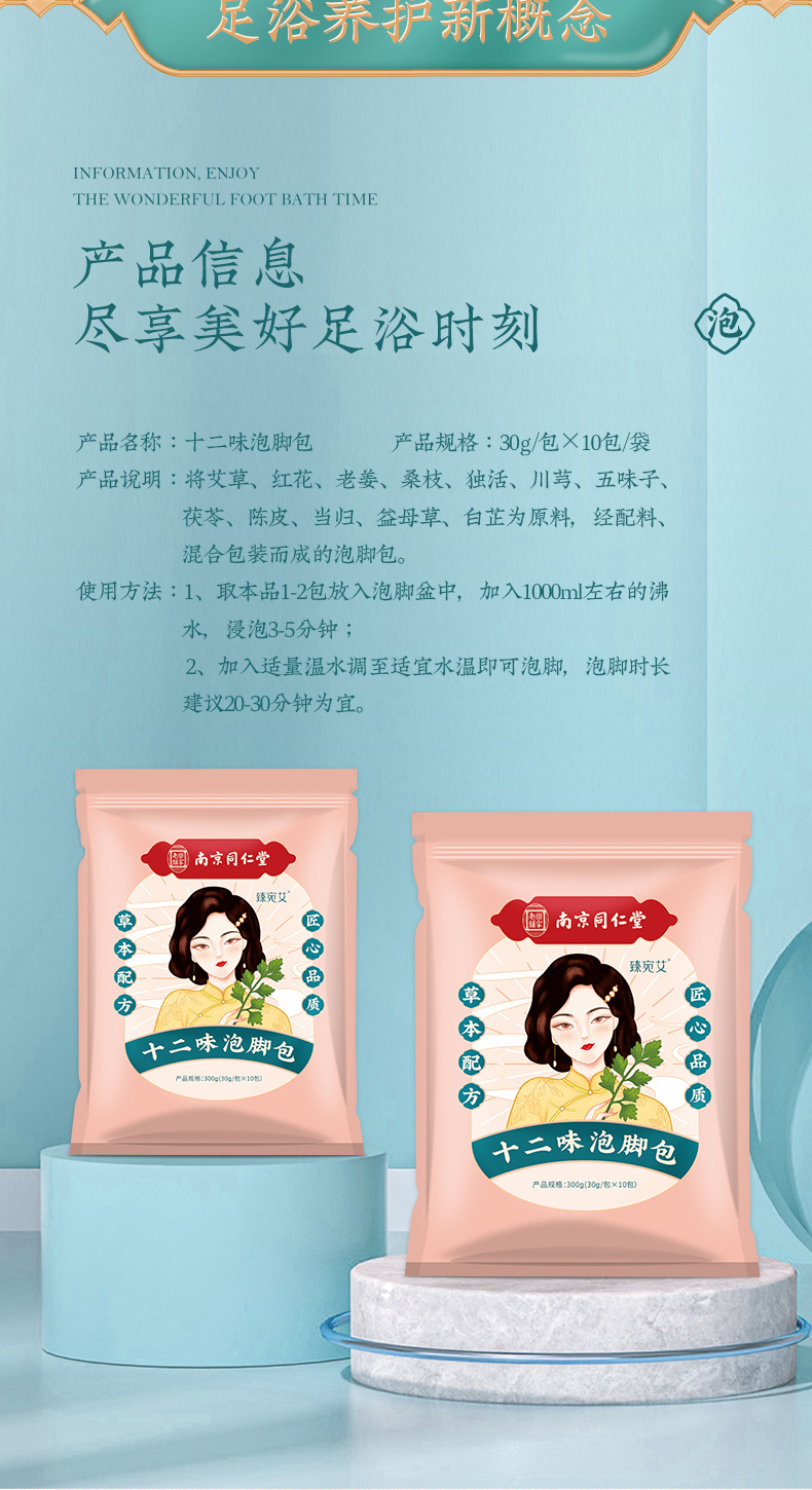 南京同仁堂十二味泡脚包艾草足浴包家用冬季草本泡脚药包