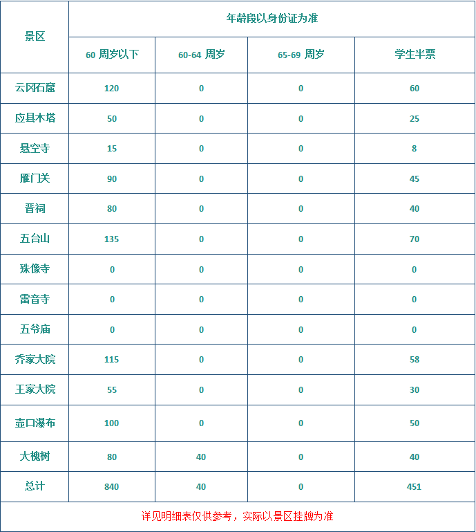 1.景区交通车(必须乘坐):雁门关10元/人、山西壶口20元/人、平遥古城50元/人