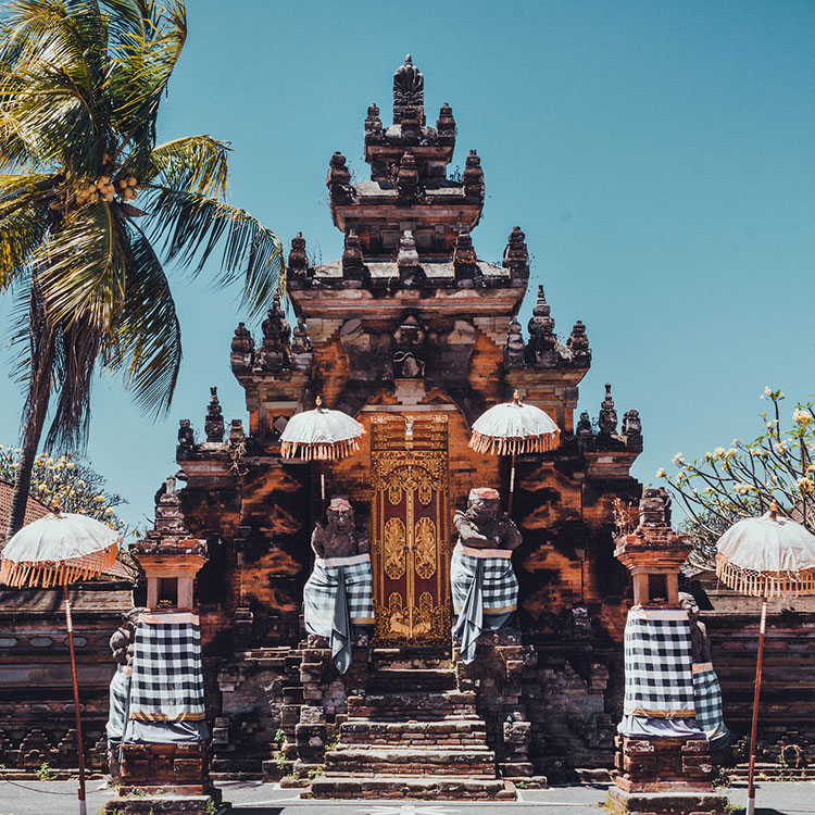 【乌布皇宫】是苏卡瓦堤王室的居所。坐落在素有巴厘岛艺术重镇的乌布市里,是乌布的地标。王宫始建于16世纪,由著名的艺术家们一手设计,共有60间房,整座宫殿气势恢宏,特别是大门,宫殿内精致细腻的手工雕刻和贵气逼人的金箔装饰。