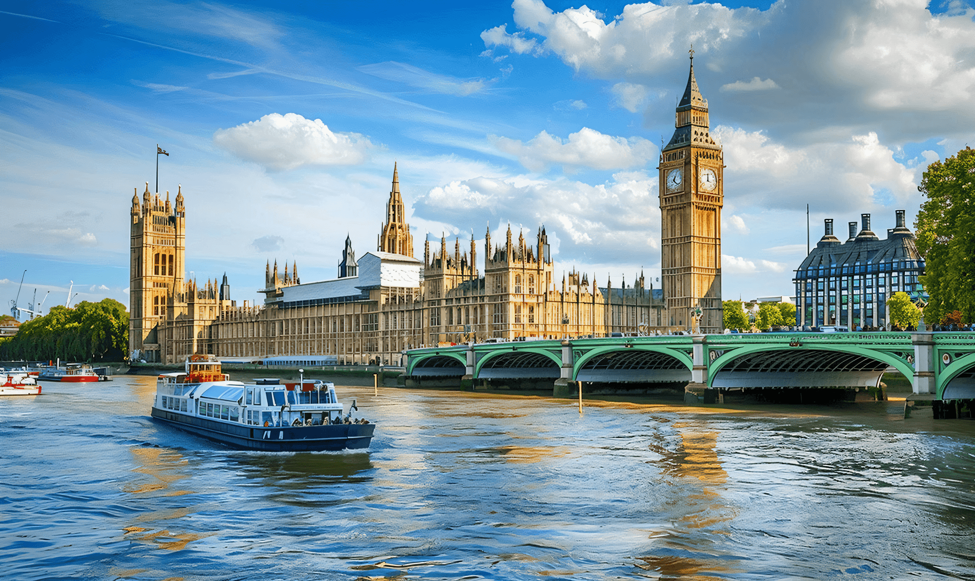 乘坐游船欣赏泰晤士河两岸风光,吹着风,穿梭于伦敦心脏,两岸景点风光 尽收眼底。尽览伦敦的母亲河一-泰晤士河的绝美风光,你-定得乘一次泰晤士河游船。