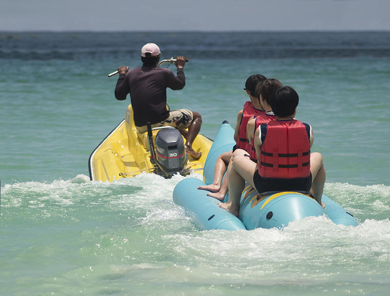 4.乘坐游艇及水上摩托车,不得跨越安全海域,游客亦不能在水上摩托车、快艇、拖曳伞等水上活动范围区内游泳。