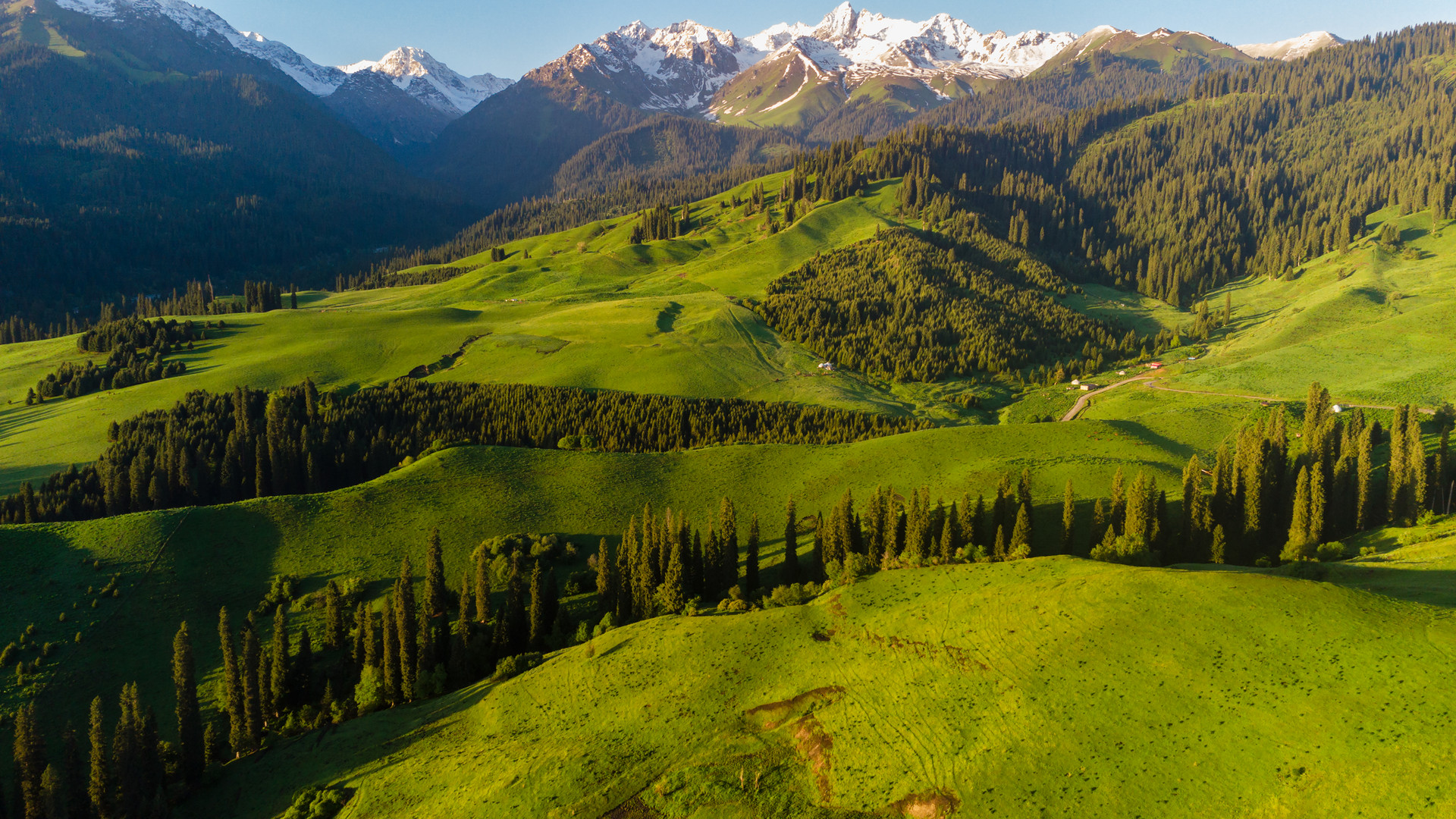 早餐后,出发前往【喀拉峻草原】(游览约3小时),穿过一大片松林来到山坡开阔处,茂密的森林武士般矗立眼前,林中草地有如地毯柔软地铺在足下,各式各样的野花点缀在草地上,非常安静清爽。
