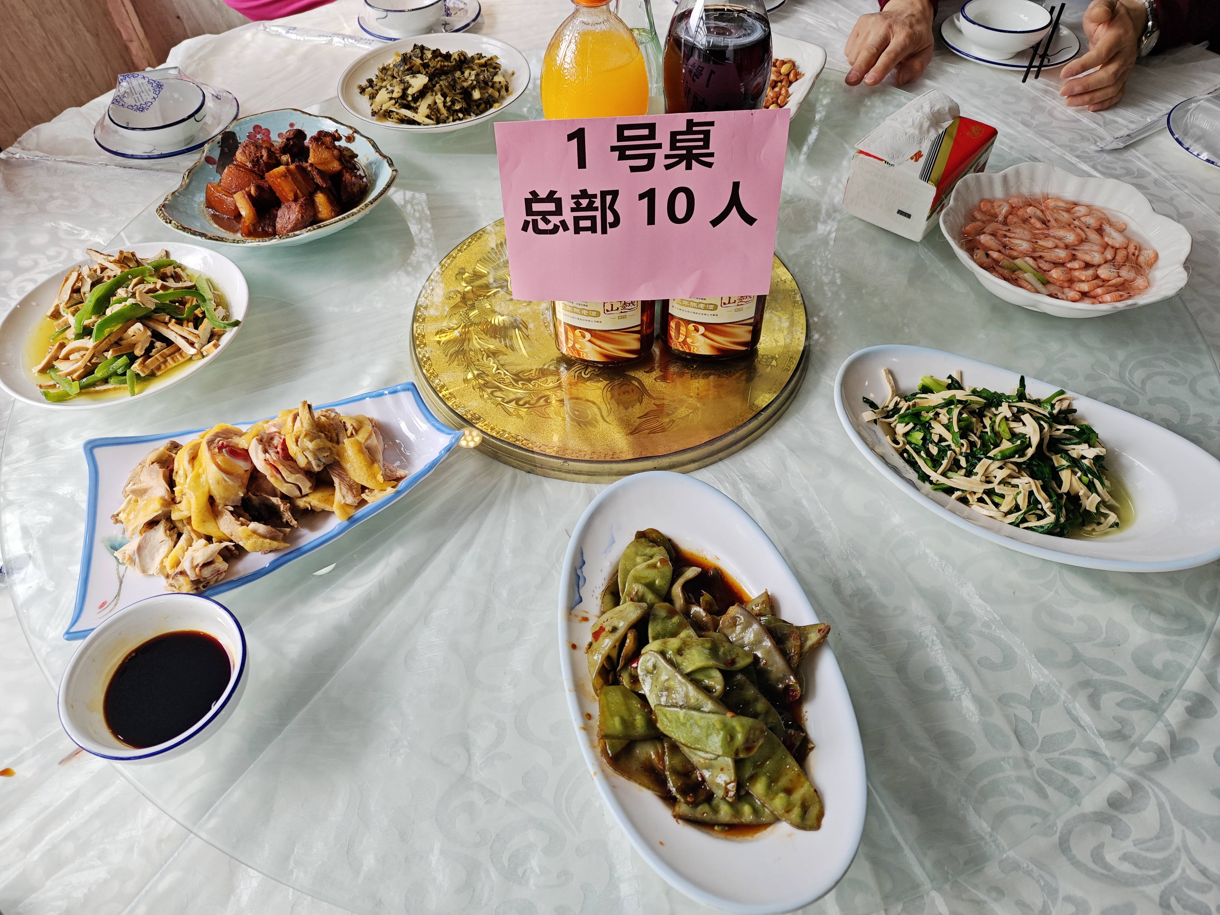 十人一桌,团团圆圆,边吃边聊,重温邻里情谊。